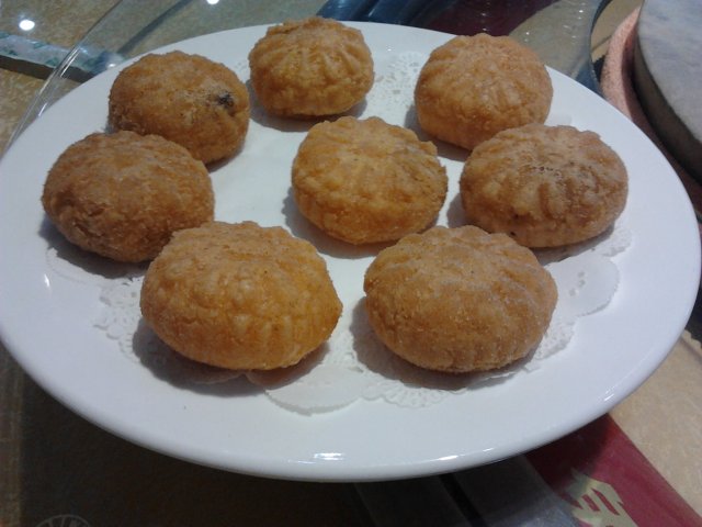 南瓜饼味道也不错,一开始看的时候还以为是月饼呢,做的很漂亮,外酥里嫩,糯糯的,很香。