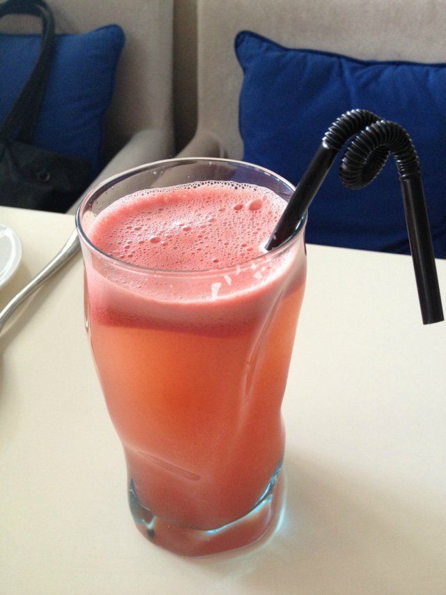 很奇妙的鲜榨西瓜汁,看起来会分层不知道为什么~~