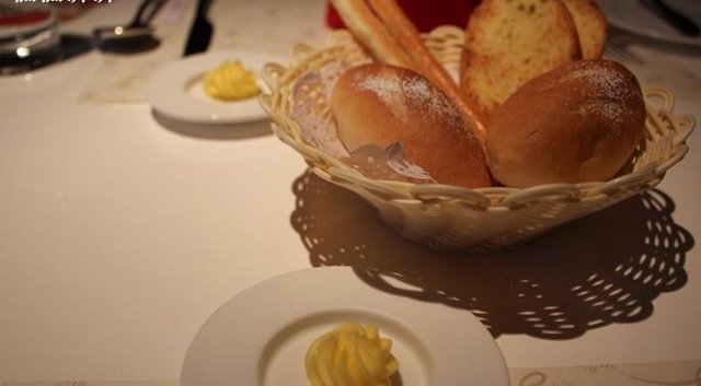 餐前面包,端上来,还是温热的,我吃了一片,味道还行。
