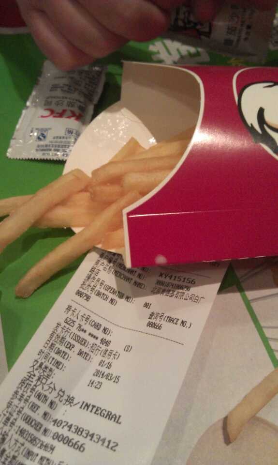 薯条 为什么开饭网等級42014-03-1720 瀏覽 關注 好长时间没去上次去他家薯条好像有些不好吃了很面咬上去懦懦的一点都不脆像是放了好长时间,可是看店里面人流量也大也不至于囤货啊.买的是大薯盒子到挺大的但是量给的很少从背面看盒上面的纸都能把薯条盖住,给的番茄酱有些咸口在加上薯条也有些咸所以吃起来不怎么对胃口以上食評乃用戶個人意見 , 並不代表OpenRice之觀點。讚好分享薯条 肯德基 https://s.openrice.com/KtbT1m06nOA00檢舉 張貼 評分2味道4環境3服務4衛生3抵食