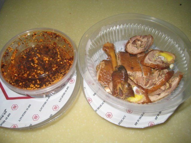 这家是朋友团购了送给我的。 22元,冷吃牛肉,冷吃兔,蘸水鸡三选二,还送一份素菜。 冷吃牛肉:牛肉全部是好牛肉,莫得那些巾巾瓦瓦的,都切得小手指头粗细,很入味,很化渣; 冷吃兔:这个也是大爱,味道很正宗; 蘸水鸡:鸡是资格的土鸡,但是蘸水觉得干辣干辣的,不是好香,而且鸡肉有点嚼不动。 素菜:这个里面的好多样,卤豆腐干,海带,海白菜,藕,都很好吃。 虽然是团购的,但是写了重量,每样菜都是用称称的,而且里面都是肉多作料少,超值了。