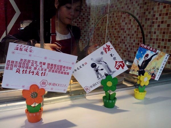 台上还摆了很多小贴士,温馨幽默告知,很扯眼球的