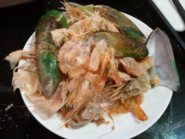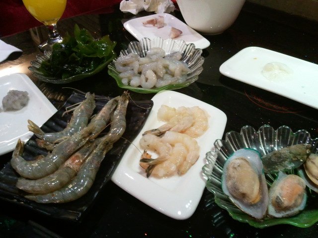 最后涮点蔬菜去去油水。全部吃完大概上了3波还是4波,2人算是非常能吃的,隔壁桌的看着我们吃的也傻眼,看看我盘中剩下的虾壳就已经蛮壮观了额。