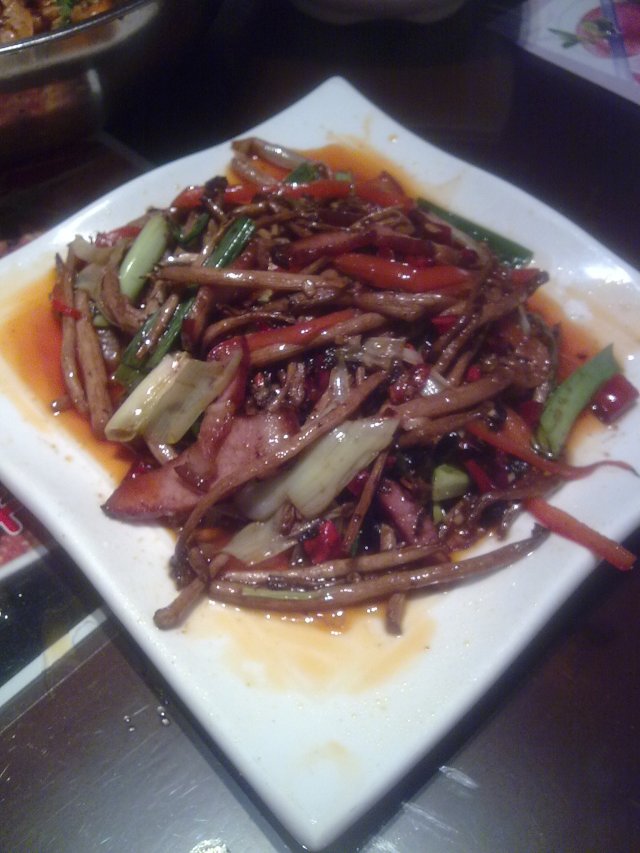 @ 爆爆椒鱿鱼香辣虾,他们家的招牌锅哦,味道是很不错,因为点的是微辣,所以吃虾的时候感觉不出什么。但是这种都会比较咸,重口味的会很喜欢~~里面的番薯跟小年糕得到我们一致的好评~~~就是番薯有时候吃到一口会非常咸,大概正好盐没化开。这个锅里面原来还是有鱿鱼大,我都没吃到。。。大概是混在一块,看不出来了。。。