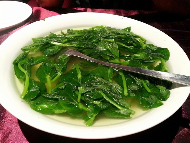 比较清淡的汤,里面的豆腐,豌豆尖放的都很多,豆腐吃着很Q,弹性很好,味道很清爽。豌豆尖很嫩,吃着很爽口,一点老的枝叶都没有,颜色也很鲜艳。