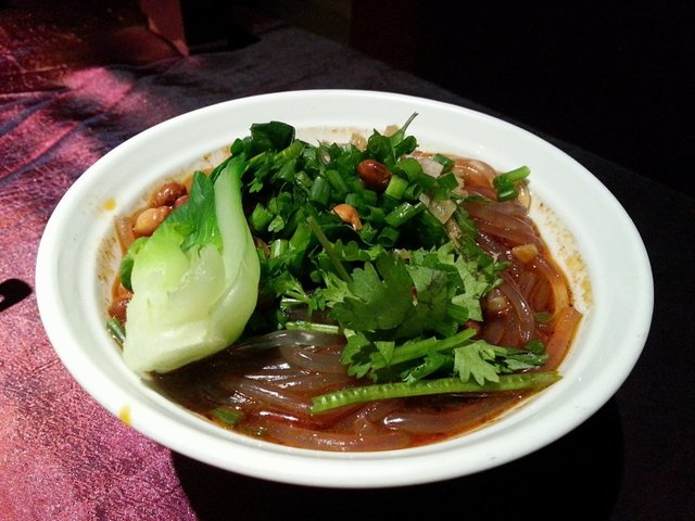 酸辣粉是小碗的,看着做的挺精致的,里面的粉是透明的,看着很通透,不过味道比较一般,酸辣的味道不是很足,也不是很入味,凑合吃吃还行。