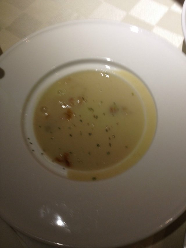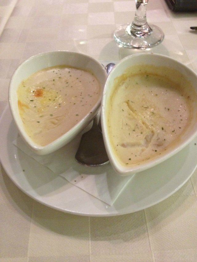 汤我选择的是法式蜗牛浓汤,里面有鱼唇和蜗牛。汤非常的浓稠,里面可以吃出鱼唇和蜗牛来,蜗牛肉很筋道又很脆的口感。