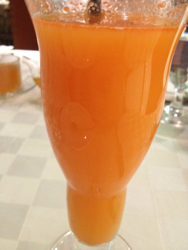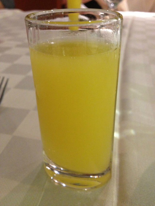 餐中饮料是百香雪酪,味道酸酸甜甜特别开胃,为了准备吃下面的大菜。百香果香,冰爽的口感。夏天喝太合适了简直。吃喝的同时服务员还随时给续杯。特别体贴。