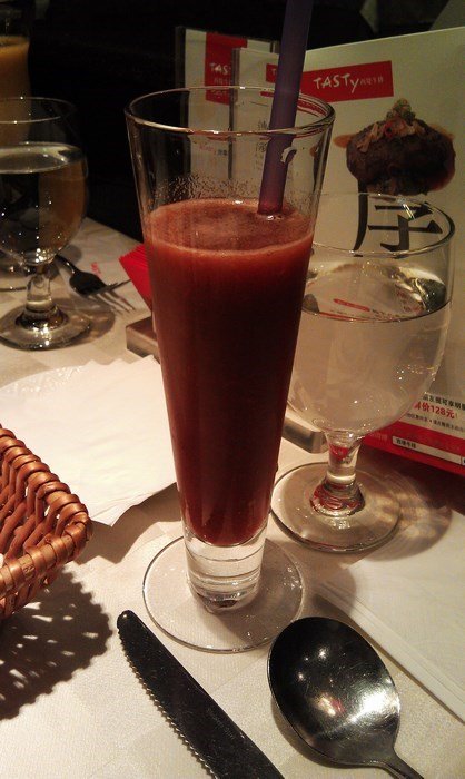 饮料点了番茄汁和热情夏威夷果昔,这个味道比较普通点,应该有兑过