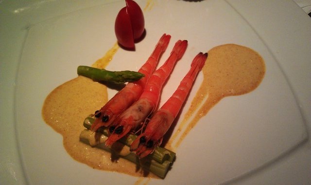 鲜虾芦荟色拉:三个虾,几根芦笋,一点点咖喱酱,比较清爽