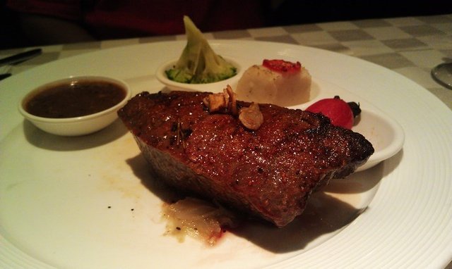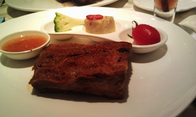 西堤臻烤牛排:感觉肉比厚牛排更加多,口感更嫩点,配的是甜辣酱