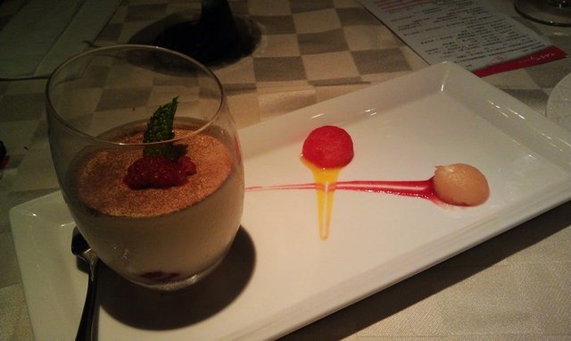 百香雪酪:餐中上的饮料,冰的,感觉有点象是柠檬果昔