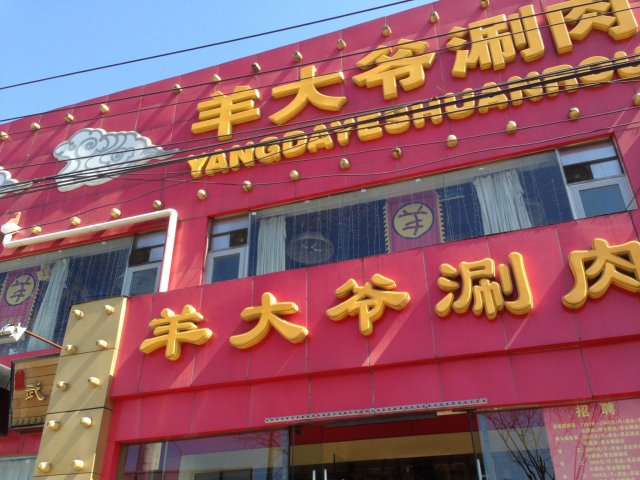 为嘛说武涮呢?现在越来越多火锅店走起斯文路线,一人一个小锅子。羊大爷秉承粗旷豪迈,武文化。店内木桌木椅,墙壁上挂着羊字旗,红缨枪,大酒缸,头盔状的铜火锅很有意思。桌子上是木有茶杯的,喝水喝酒都是大茶碗,很是豪迈。