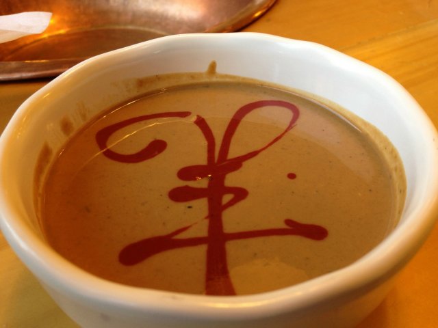肥牛调料和传统调料都是6米,麻酱很有趣,腐乳勾画的羊字,有葱花,香菜任意添加