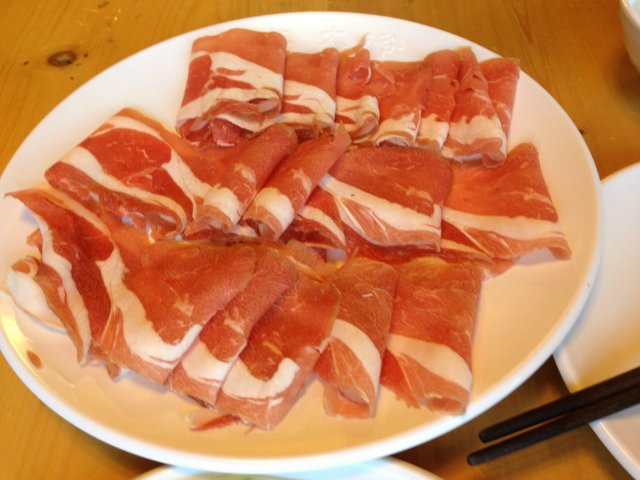 肥牛 羊肉各一份,羊肉肥瘦相间,七八片吧,肥牛还可以。
