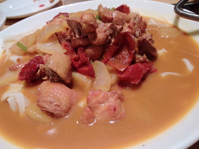 西贝大盘鸡 除了鸡肉还有面食跟土豆 土豆煮的很软 很好吃 鸡肉吃了一块之后直接不想再碰了