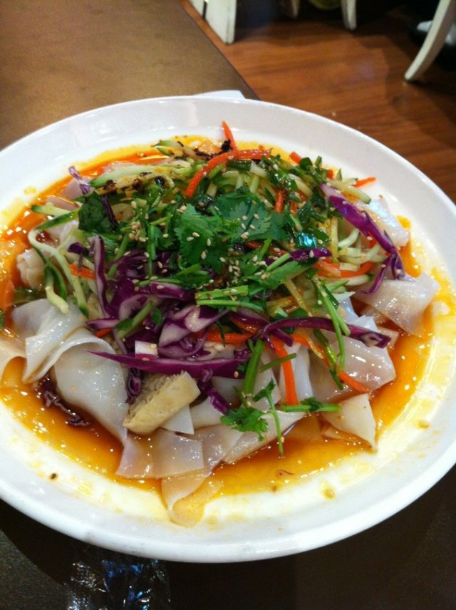【西贝面筋】:这道菜第一次吃就爱上了,之后每次去都是必点的,首先量很多,有目共睹的,其实味道非常的好,酸酸的,鲜咸味非常的浓郁,口感清爽,面筋很有嚼劲,凉皮很Q谈,韧性非常的好!超级喜欢!