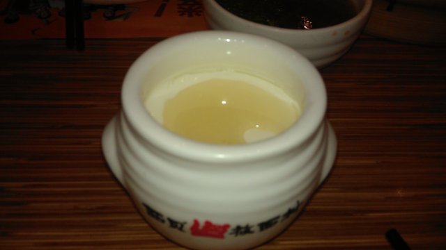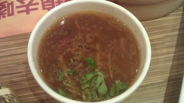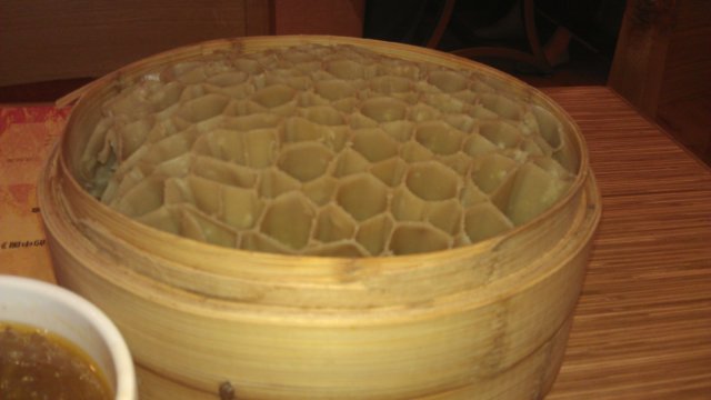 莜面窝窝——就是冲着这个去的,看到电视里面做过,我还没吃过来,莜面如蜂窝状放在一个小蒸笼里面,点的时候要另外再点个沾汤的,因为点了羊肉泡馍,这次就选了菌菇汤,汤相对比较咸,可能是因为配合莜面的关系,莜面是淡的,莜面口感不错,很有嚼劲,但是拉一起来比较累,都粘在一起了。