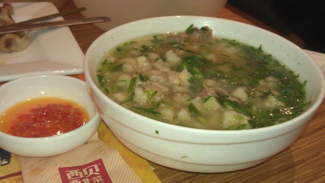 羊肉泡沫——这个和当地的还有有差别的,不用自己掰膜,羊肉汤的味道还是很浓的,羊肉好少,粉丝很多,味道还行,不过说不了羊膻味的人还是谨慎!!