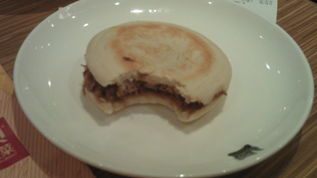 肉夹馍——上来比想象当中要大点,也就是比外面小店的大些,馍烘的很香脆,肉汁不够,肉也比较少。味道可以的。