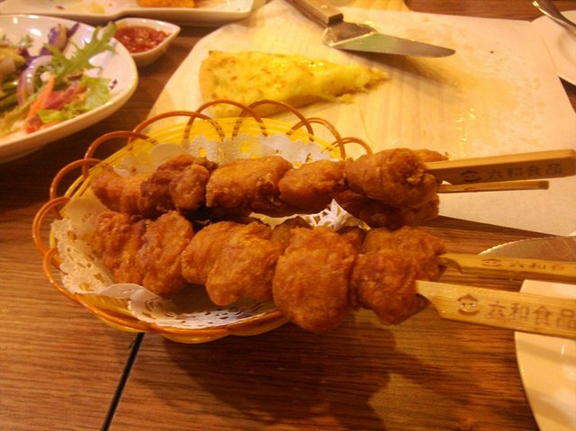 鸡肉串,还不错,肉比较多,肉串也挺大的,外皮是脆的,里面比较嫩。这个应该就是半成品加工的。
