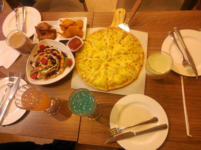 最压轴的要数榴莲匹萨了,这个等的通常会非常慢,但是味道确实不错,有厚厚的榴莲和芝士味道,味道非常浓郁,果肉也很厚,就是吃多了会腻。希望匹萨的水平要保持下去,不要缩水啊。