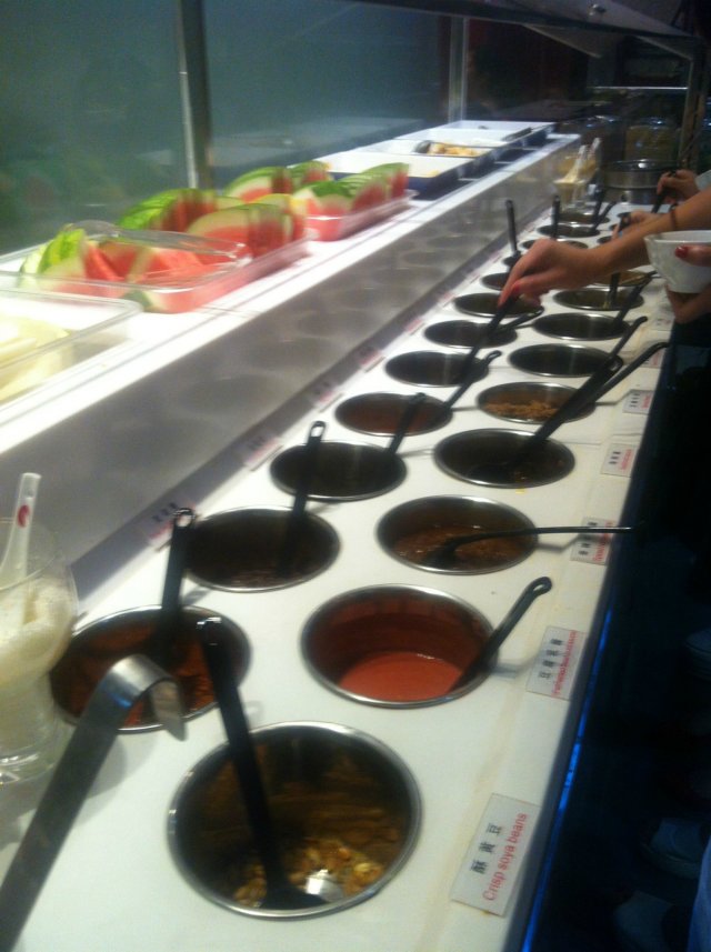 估计是很多人排了队一直占着桌子等着六七点才开吃。