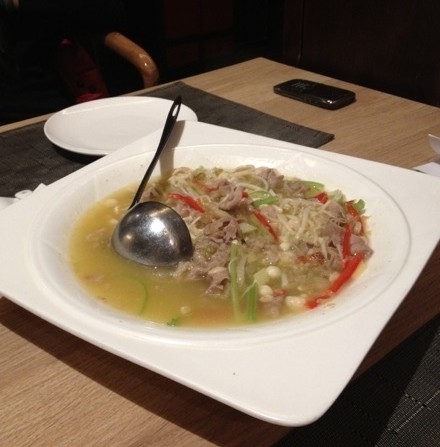 汤属酸辣口,喝了一小碗还。