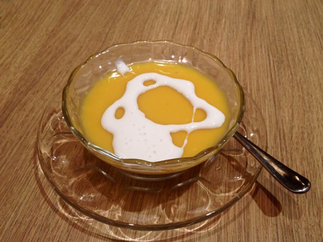 老公想吃鱼,本来想点油淋鲈鱼的,考虑到这道菜会不会太清淡,我改选了豉汁蒸鮰鱼。另外要了炭烧豆腐和芒果布丁。上菜速度好慢,也不知道是不是因为我们点的这两道都不属于炒菜的关系。眼看着左右两桌菜都上齐了,香味四溢,我闻着是越来越饿。等了半个多小时,我们的菜终于上来了。