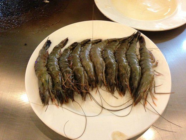 看着新鲜的黑虎虾 对食材很放心