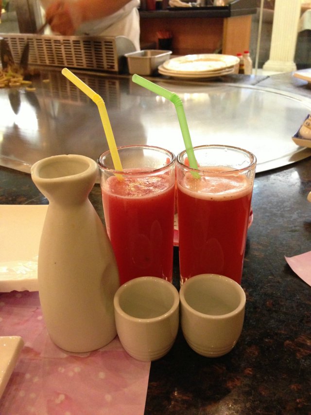 点了瓶清酒 西瓜汁和草莓汁 这2个果汁颜色几乎一模一样