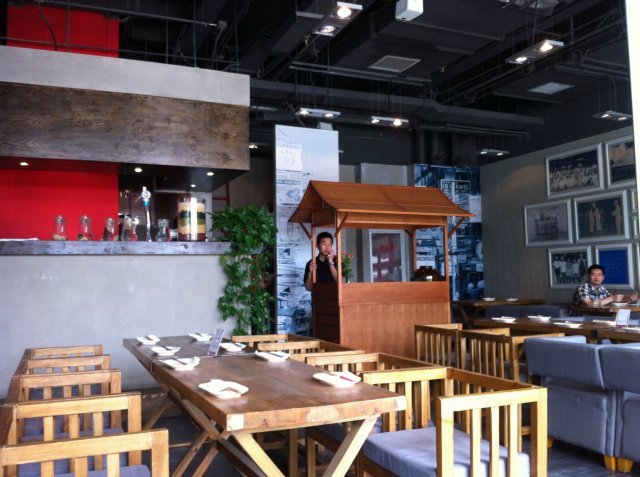 每次逛蓝色港湾,外面的露天餐位他家相较于左邻右舍都较为冷清。今天我们11点35到店内,有两拨人占了两大排桌子,貌似都是聚餐。一拨人就是东南亚人,另一拨人……居然有一位是熊汝霖!最近净撞星了,昨天去星美看电影马艳丽就坐我旁边而且等我们1点吃完饭一层已然坐满了!人气还真是旺呀~