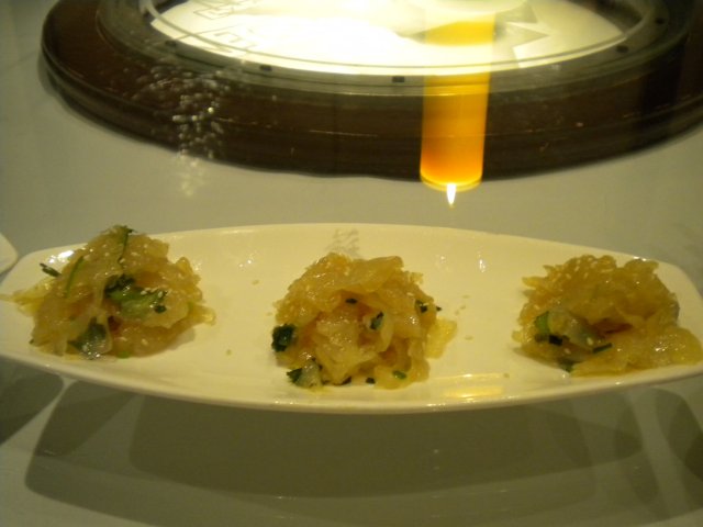 口味么,说实话这种大餐真没有小馆子口味好.这种地方就吃了个环境吃了个服务,吃的就是这种高档的感觉,所以就不多评价了.总的来说还不错.在5757上订的位,所以还送了甜品,那天是红豆粥,口味一般.