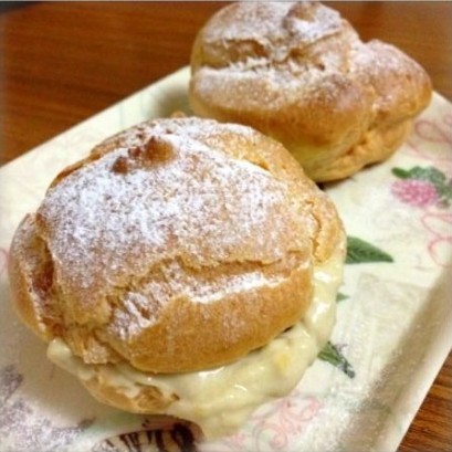 泡芙的口味有多种,奶油、巧克力、冰激凌、抹茶等等,都是把各种不同口味的奶油通过注射灌进面包里而成。外冷内热,外酥里滑,口感特别好,关键是吃完一整个都不会觉得腻哦~~