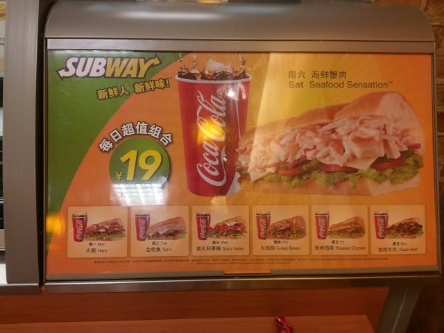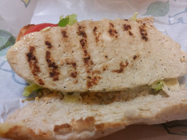 这家店的招牌还是很明显的,也很好找的一家店,里面的环境还挺好的,就是显得有些闷热,他家是现点现做的,点的是香烤鸡排三明治,面包选的是全麦面包,里面的蔬菜也是自己可以选择的,然后放进烤箱去烤制,过了一会就好了,整体看着这个三明治的卖相还可以,不过全麦面包口感似乎有点硬,里面的酱料味道比较浓厚,特别是那个蔬菜等还是很新鲜的,汁液还很足的,个人感觉整体上性价比一般,可以尝尝!