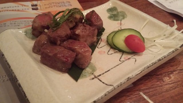 比较失败~基于价钱来说这句话!除了海鲜之外,这道牛肉算是贵的了,牛肉粒大概咸烤至七分熟的样子,带血,牛肉肉质真心很普通,而且有两块是整块的肥肉,腻是腻得来...