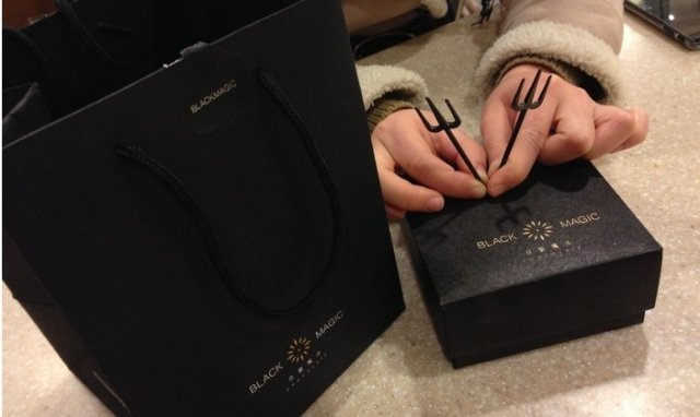 盒子里配的小叉子也很别致,跟小恶魔的小叉一样的乖巧。