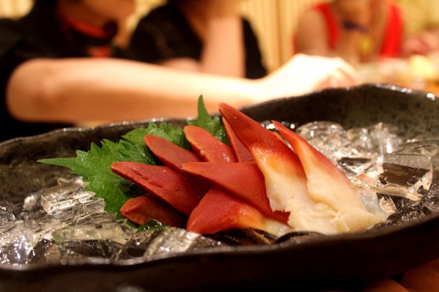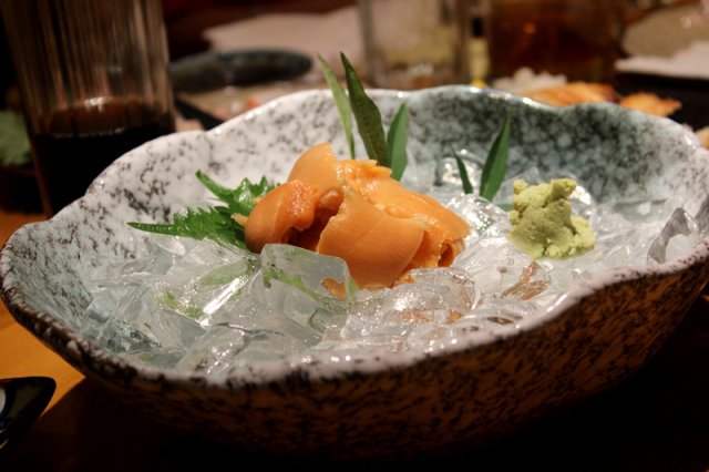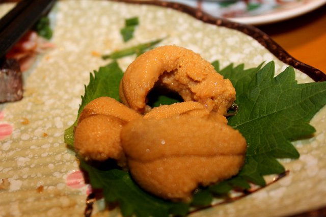 海胆要推荐呀,是活海胆,色泽也透着鲜亮有木有。口感一级棒啊,鲜美的舌头要吞掉啦。。
