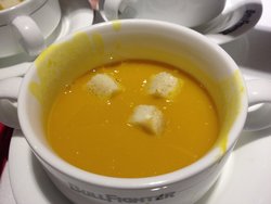 汤:因为人多,每种都要了一份,有玉米的,南瓜的和罗宋汤。玉米汤是咸口的,罗宋偏酸,我个人还是喜欢甜甜的南瓜汤多一点。