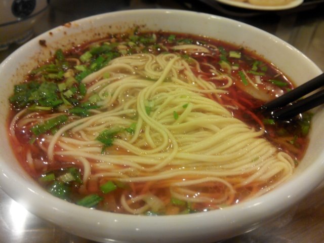 来这边第一感觉就是好偏,在巷子里,但是门口的车排起了长龙,看来大家都是好酒不怕巷子深,为了美食深入小巷。一进门发现付款那里和领面都排了好长的队,所以饭点去一点要多几个人,分工合作,占座,买面,领面分头进行,这样才能迅速的吃到面条哟。对了,他家还有小凉菜和羊肉串都还不错,典型的兰州风味,羊肉串是铁签子烤的,传热快,肉质鲜,但是调料味和北京略有不同,更辣更咸,就这面吃刚刚好。凉菜有紫甘蓝、藕片、青笋、黄瓜之类的,但是调味里面麻油味更重,不晓得是不是放了很多花椒,但是相当开胃引人食欲。再来就是面条了,汤香面细,肉筋斗就是少点,建议加牛肉,切成薄片的牛肉在汤里泡一会再吃,肉面在口中交融啊哈哈哈,超有口感,下次有机会一定还去。