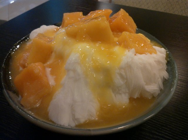 话说这芒果果肉的味道,其实不如芒果酱来的有效果,混合着芒果酱的绵绵冰,香甜可口。