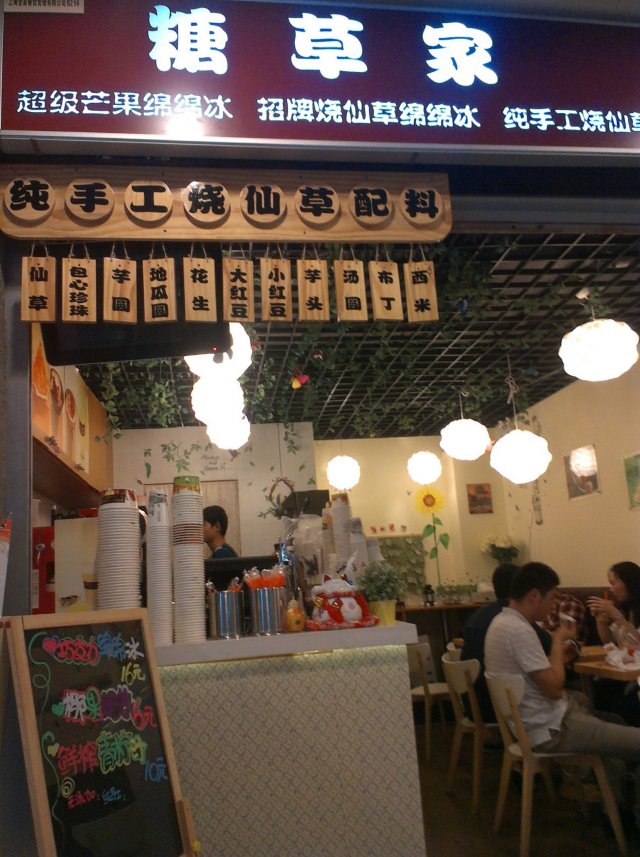 这家糖草家,店铺不是很大,店铺的一半给了柜台和操作间,另外一半则是就餐区,可是因为摆放了过多的座椅,显得很拥挤,而且店里的员工挤在柜台里,也显得空间很局促。