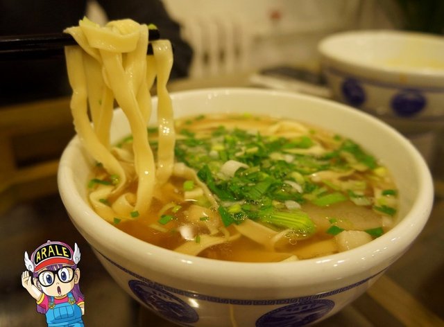 哥们儿点了韭叶,在此之前我不知道还有这么种面叫韭叶。还点了好像是二细和毛细,记不清了,每种我只吃了一口。汤清亮,味儿跟以前吃的好吃的汤一样,太细了面以至于软,一直不太待见。韭叶太宽也不太待见,我最喜欢的就是普普通通一般的那种粗细,最好吃,又不硬又不软。