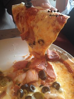 西尔批萨,50米,好大一个,目测9寸左右~两个人吃,量大了点,薄底的,非常香脆,芝士能拉丝。