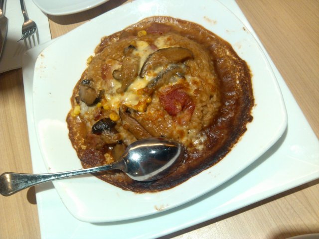 【法式芝香蘑菇培根焗饭】外形颜色有点难看~味道还是不错的~~芝士和蘑菇的香味浓厚