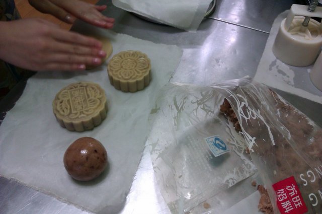 这里的大厨正在帮我们准备月饼需要的饼皮面~~旁边有个客人正在给自己的慕斯蛋糕裱花~~从她的感言来说,这看似简单的过程真心比想象中难不少~~