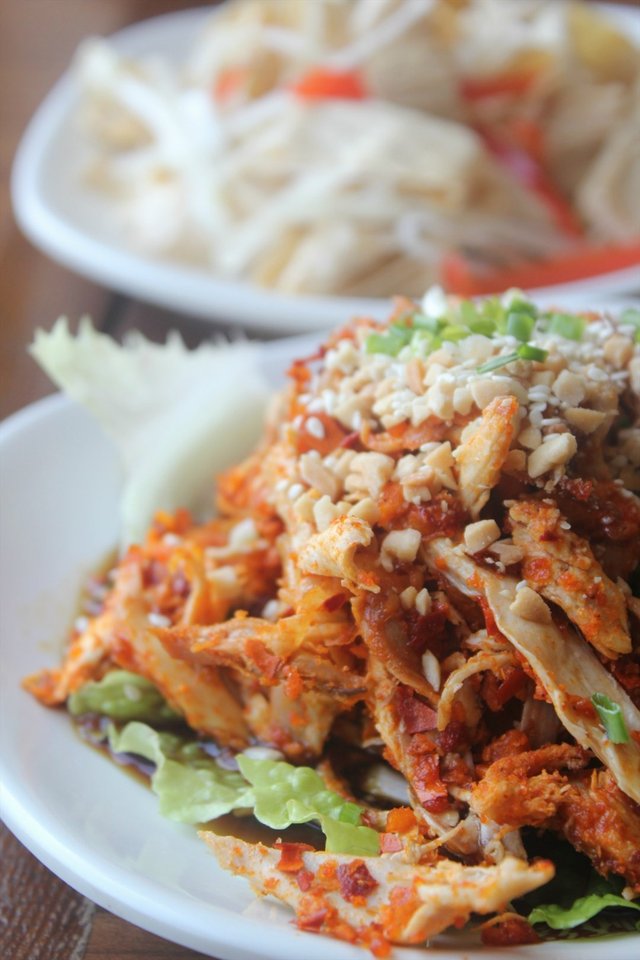 小食的话,土豆丝略有些大蒜味,不太喜爱~豆腐皮蛮不错的,豆制品好东西~还有口水鸡,估计是变成多椒鸡,还不错吧口感,辣辣的~蛮入味的~推荐菜: 过桥米线 番茄米线