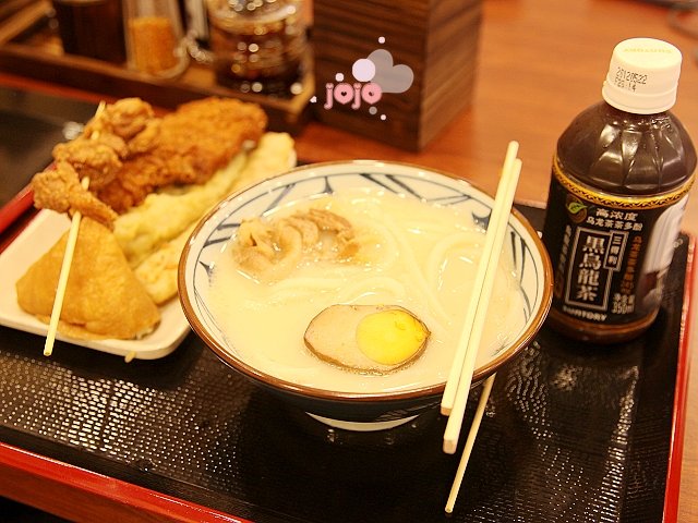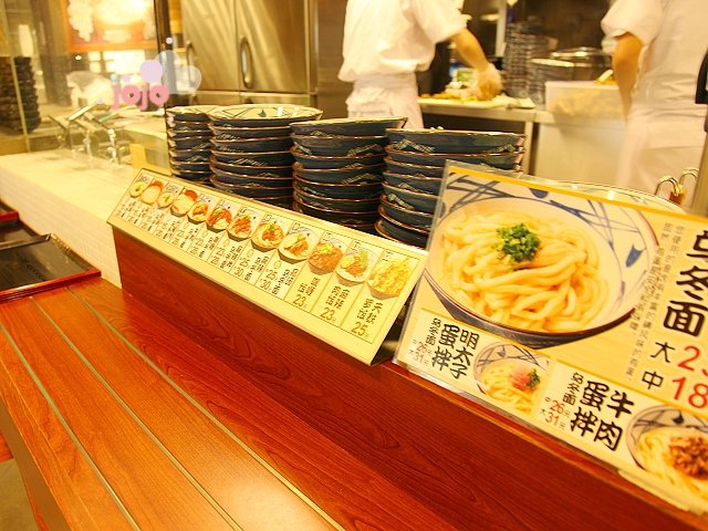 拿着个托盘,端好乌冬,顺着柜台走,有天妇罗、炸物、饭团、沙拉、饮料什么的