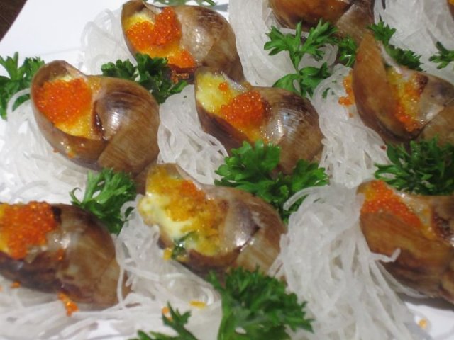 法式蜗牛,蜗牛个头挺大的,肉质鲜嫩。我是蘸着别的料吃的,很鲜。