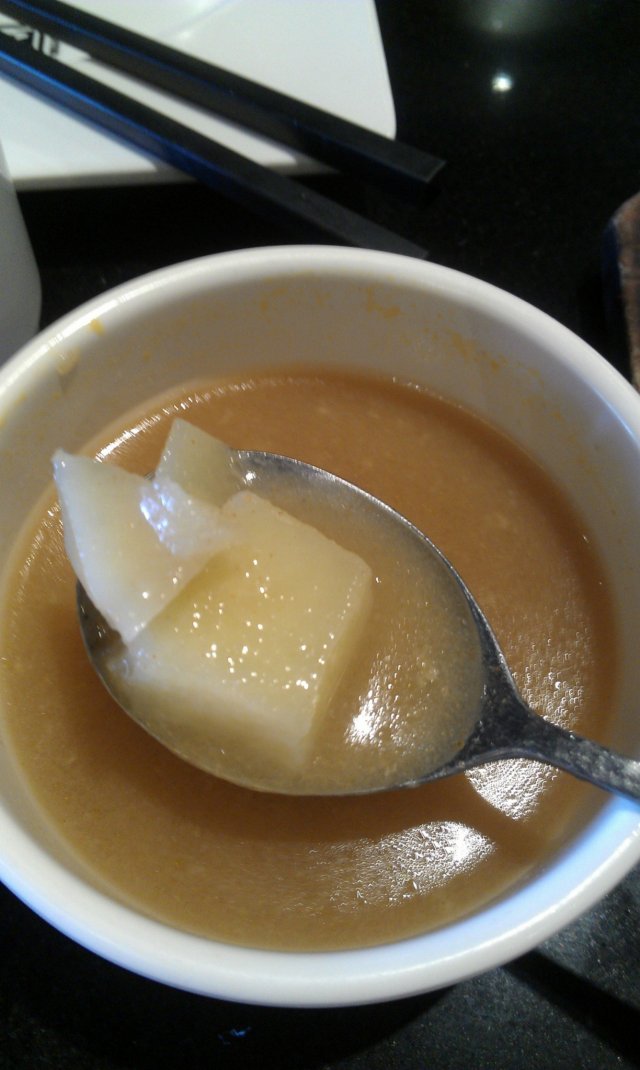 我点的是什么芝士什么拌饭的,名字真心记不得了,但是味道还不错,和平日里吃的拌饭感觉不同,比较清淡,而且他家的米中好像混合了紫米,吃起来更有感觉。芝士放的也很足量。虽然点的只是这午市套餐,但是服务还是很好的,落座就上来小菜和大麦茶,芸豆很好吃,大麦茶也不错。点这个套餐也还送例汤和蔬菜沙拉,总之这样吃一顿还是挺不错的。